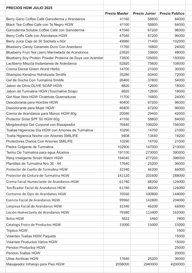 Las Compras Iniciales se hacen a precio Junior, al Sumar 4.800.000 en Compras Durante 6 Meses se obtiene precio Master de por Vida. (Descargar Lista de Precios).